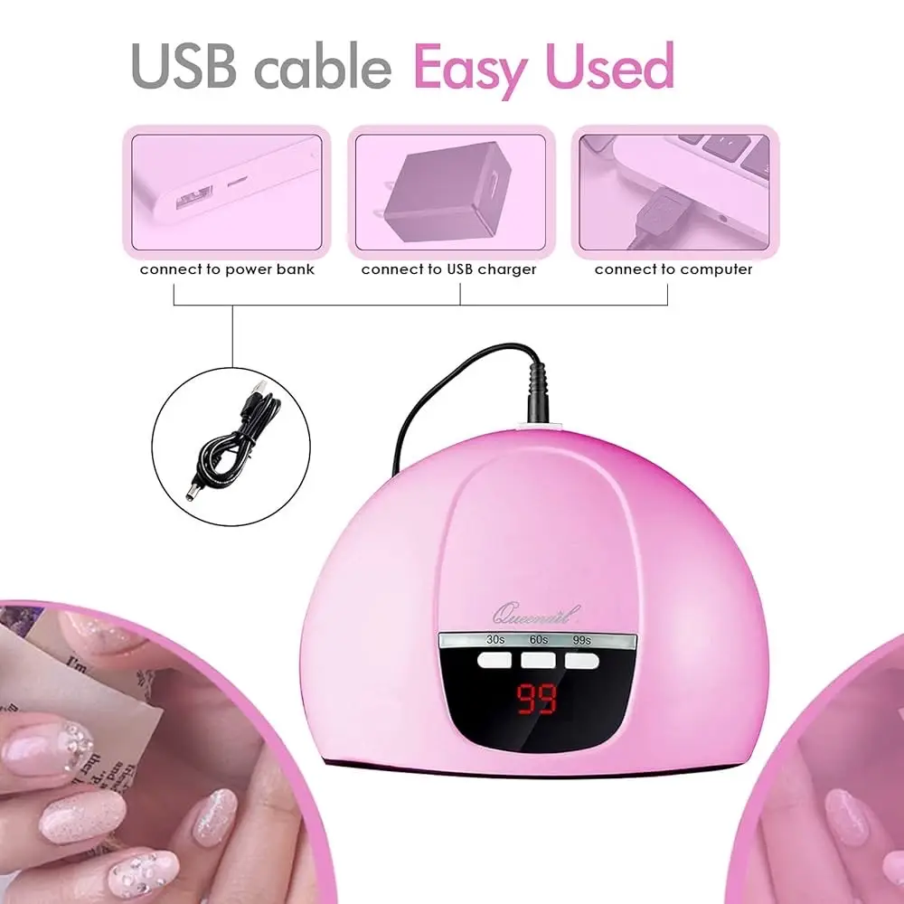 • 3 إعدادات للمؤقت وشاشة LCD: يحتوي مصباح الأظافر الخاص بنا على مؤقت 30/60/99 ثانية للتحكم في وقت المعالجة لكل طبقة كما تريد. وضع الحرارة المنخفضة الفريد 99 ثانية ينطبق على الأظافر أو اليدين الحساسة. تعرض لك شاشة ال سي دي عالية الدقة الوقت بوضوح وتبقيك على اطلاع بالعملية.