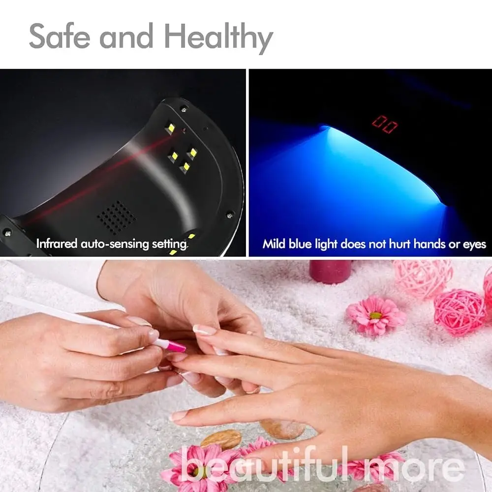 • يجمع مصباح الأظافر LED بالأشعة فوق البنفسجية بين أفضل ما في كل من مصباح الأظافر بالأشعة فوق البنفسجية ومصابيح LED. قوة 54 واط مع 18 قطعة من مجفف الأظافر بخرز LED يجفف طلاء الأظافر الجل بسرعة فائقة. بالإضافة إلى ذلك، مصدر إضاءة LED مزدوج للأشعة فوق البنفسجية - يحاكي أشعة الشمس الطبيعية، مضاد للوهج ولا يسبب إحساس بالحرق، لا يؤذي عينيك ولا يضر يديك.